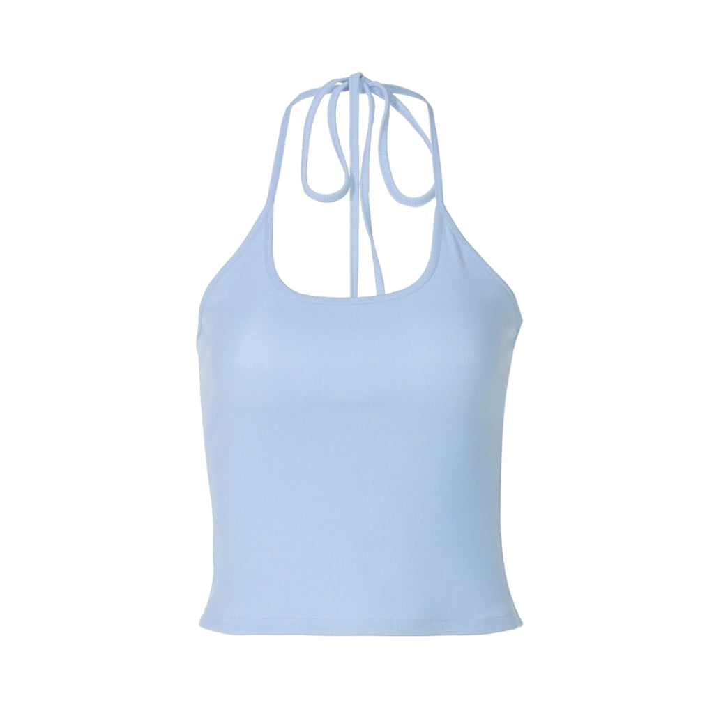 The Nova Top is a second-skin halter with a clean scoop neckline and open back. Designed to flatter without fuss, its body-hugging fit and lace-up back detail make it the kind of top that turns basics into a full look — whether layered or worn solo.